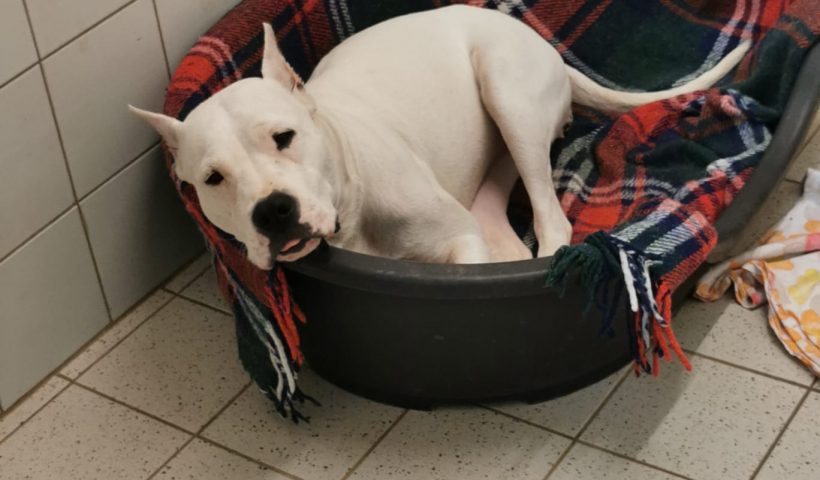 Hallo, ich bin die Mable 🙂 eine zauberhafte Dogo Argentino Hündin 🙂 Ich wurde illegal von Ungarn nach Deutschland eingeführt und sitze nun deshalb erstmal im Tierheim fest…