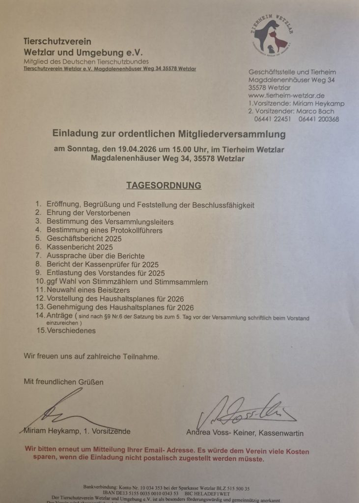 Am 19.04.2026 findet unsere Mitgliederversammlung statt.